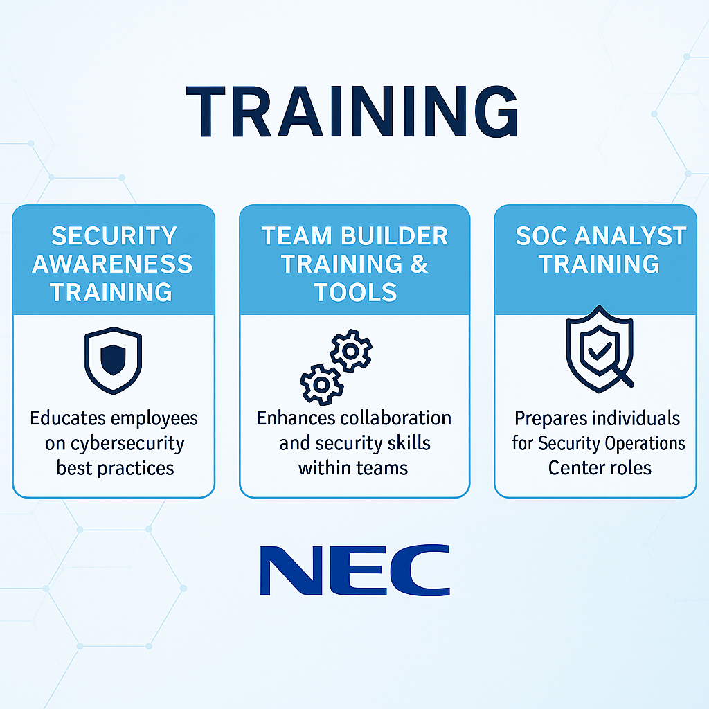 Training program designed to enhance the skills, knowledge, and readiness of personnel to effectively respond to cyber threats. The course covers cybersecurity awareness, team collaboration, and preparation for using the Security Operations Center (SOC).